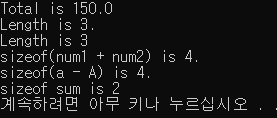 printf("sizeof(num1 + num2) is %d.\n", sizeof(num1 + num2)); //Int 형의 덧셈이기 때문에 4바이트가 나옴