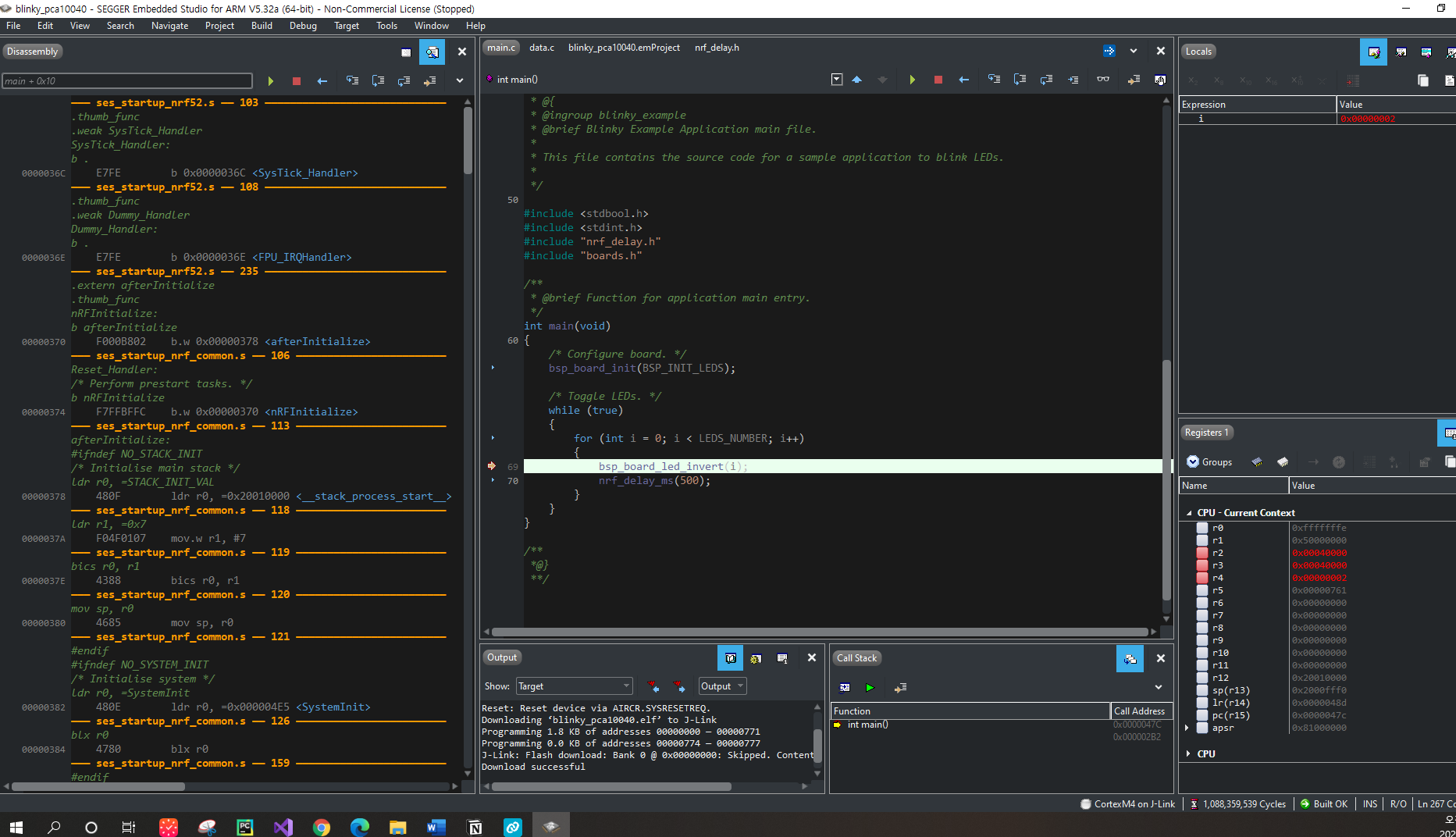 F5 또는 Debug - Go 를 선택하여 임베디드 보드에서 브레이크포인트 및 다양한 디버그 기능을 사용할 수 있다.