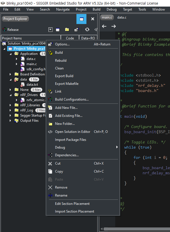 C:/Nordic_Semi/nRF5_SDK_17.0.2_d674dde/examples/myProjects/blinky/data 처럼 forward slash를 이용한 path여야 한다.