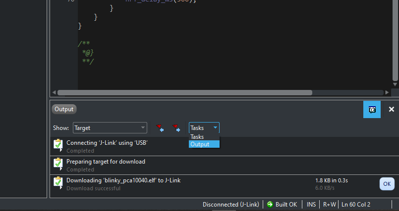 라는 blinky example 을 붙여넣는다면