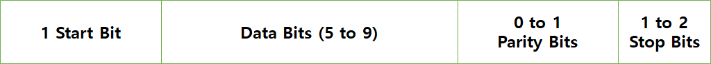 Asynchronous인 이유는 두 디바이스 간 통신 시 Clock 이 비동기 이기 때문이다. 각 디바이스는 고유한 Clock 을 발생시킨다. 같은 Clock Source로 통신을 동기화시킬 경우 Universal Synchronous Asynchronous Transmitter/Receiver (USART) 로 볼 수 있다.