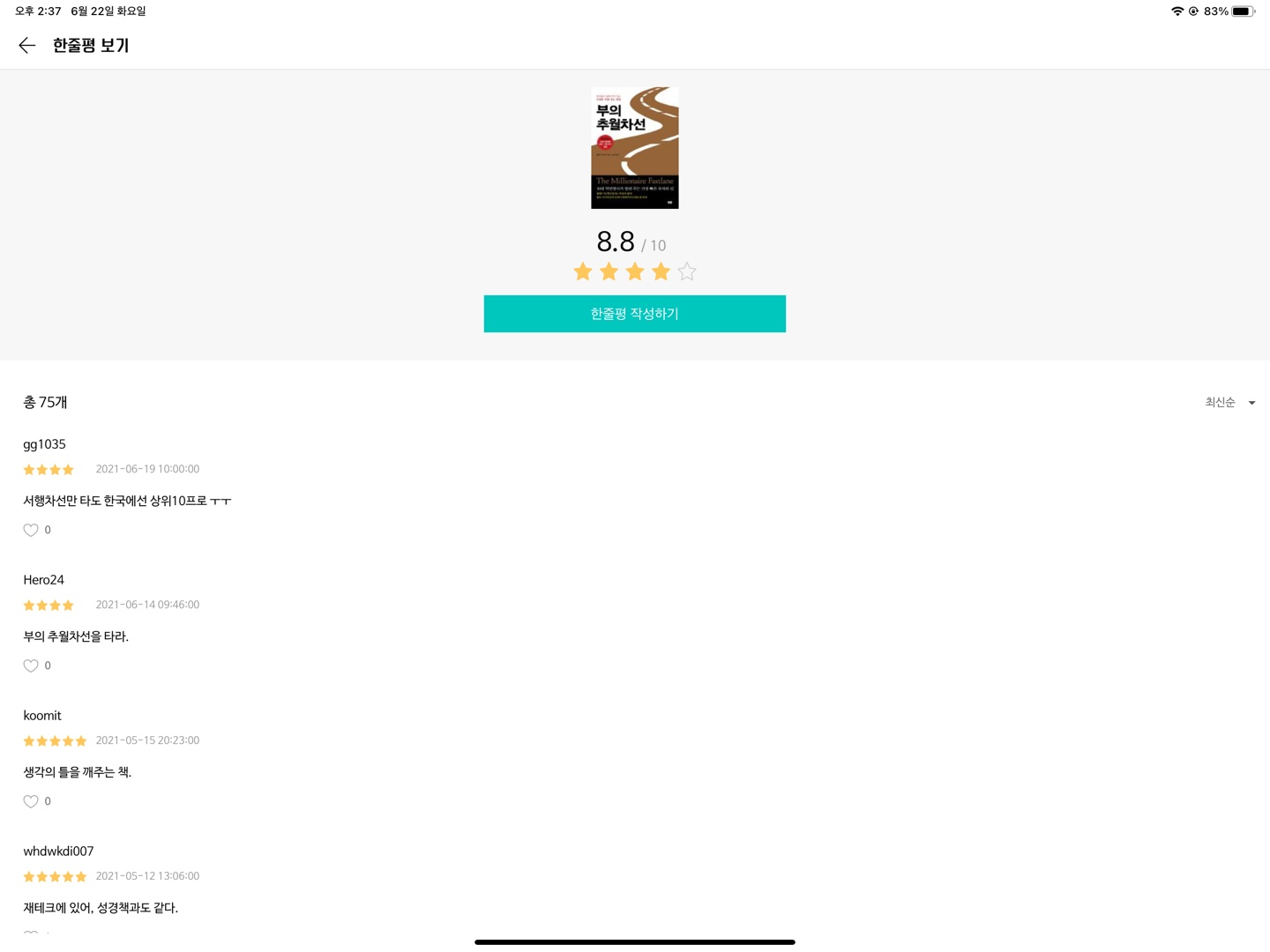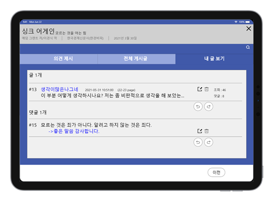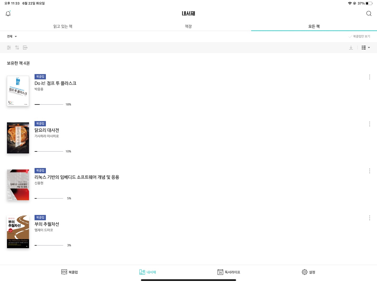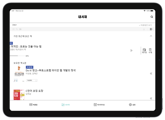서재에서 책을 터치해 들어가면 다음과 같은 화면이 뜹니다.