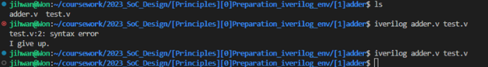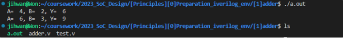 다음 명령어로 설계한 모듈과 테스트벤치를 iverilog로 컴파일 가능합니다.