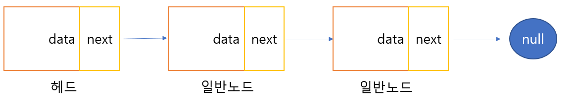 단일 연결리스트는 인덱스를 이용한 참조는 힘들지만 데이터 삽입과 제거가 용이하다. 다음과 같은 구조를 가지고 있다.